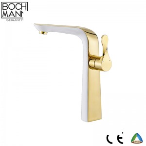 Robinet d'eau pour lavabo haut en laiton de couleur golen et blanc