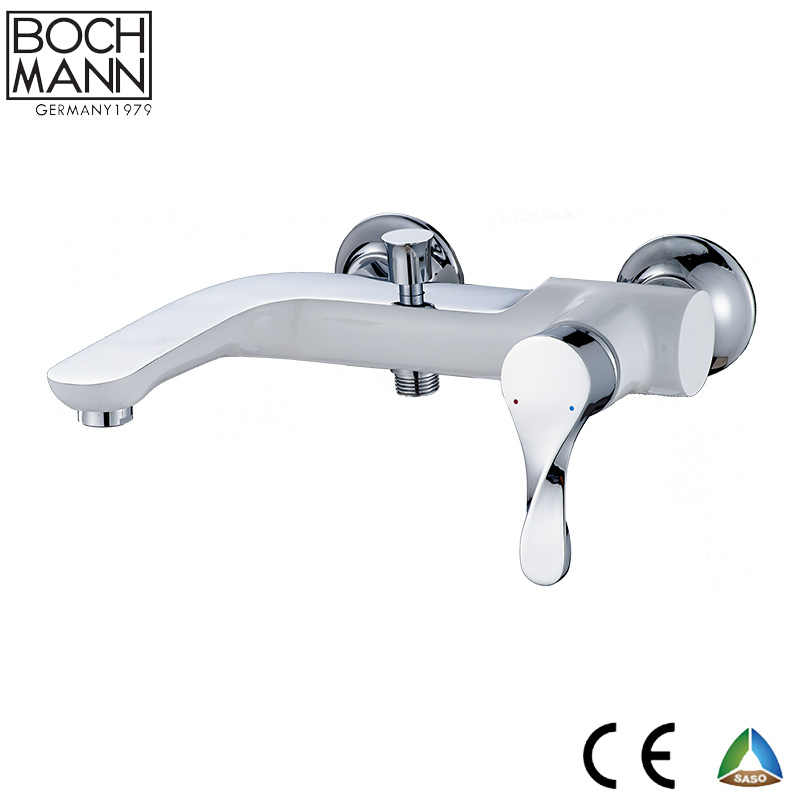 镀铬和白色黄铜浴室浴缸龙头